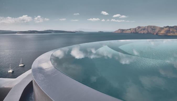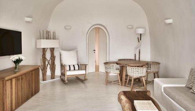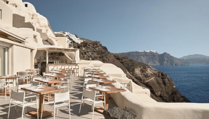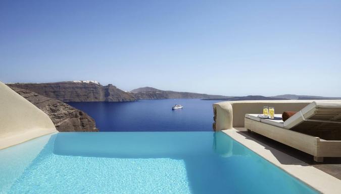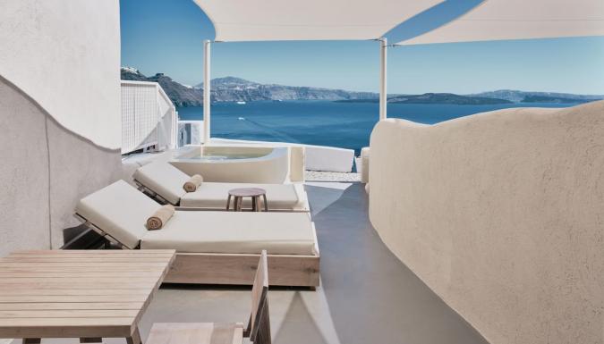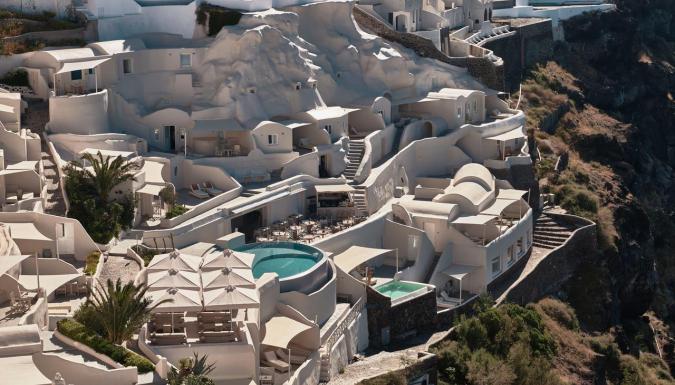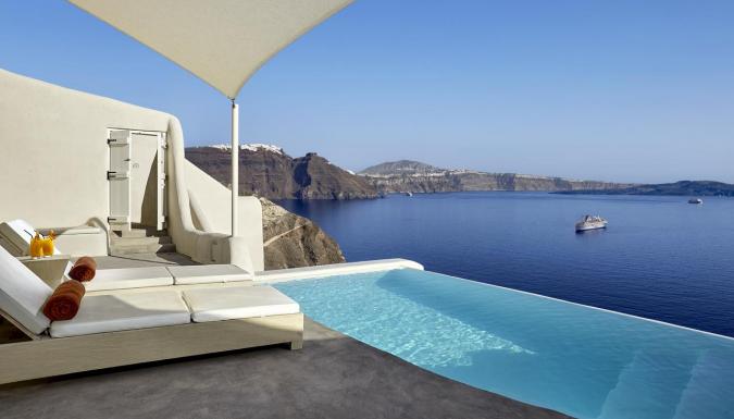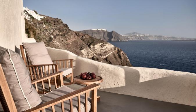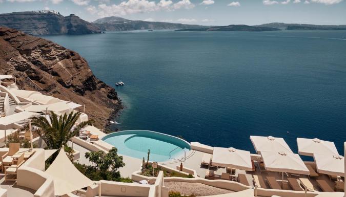 Отель Mystique находится на самой известной скале острова Ойя. К услугам гостей пейзажный бассейн с террасой для загара и бар с захватывающим видом на вулкан и кальдеру.