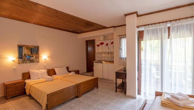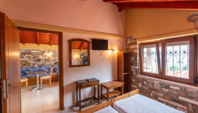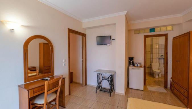 Все номера и апартаменты отеля Pontios оснащены телевизором, холодильником и кондиционером с индивидуальной системой контроля. В распоряжении гостей фен и сейф. В некоторых номерах имеется мини-кухня с плитой, где можно приготовить завтрак и легкие закуски
