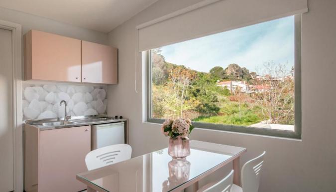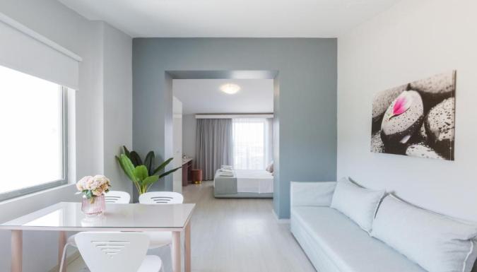 Во всех современных номерах имеется мини-кухня и работает бесплатный доступ в интернет. Среди прочих удобств кондиционер, гостиный уголок, телевизор с кабельными каналами и балкон с видом на море.