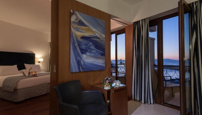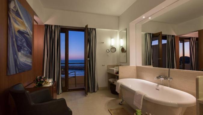 Современные номера отеля оборудованы геотермальной системой кондиционирования и собственными балконами, откуда открывается восхитительный вид на гавань, Старый город и критский горный хребет Лефка Ори ("Белые горы").