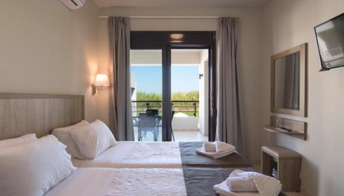 В каждом номере отеля есть балкон. Номера отеля Carisa Maleme оснащены кондиционером и шкафом для одежды.