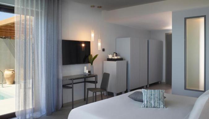 В распоряжении гостей собственная ванная комната, а также патио с видом на море. В номерах установлены кондиционер, письменный стол, телевизор с плоским экраном. Предоставляются полотенца и постельное белье. Кроме того, в каждом номере есть сейф.