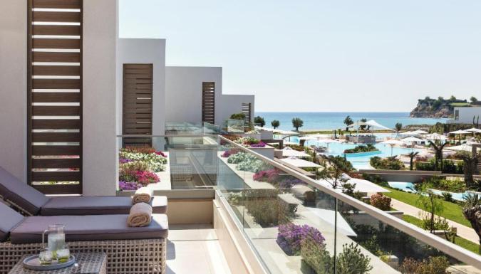 В отеле Sani Dunes с великолепным видом на море к услугам гостей современный спа-центр, частный пляж на курорте Сани и большие бассейны.