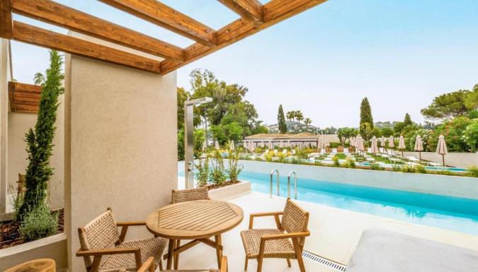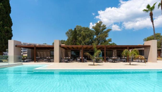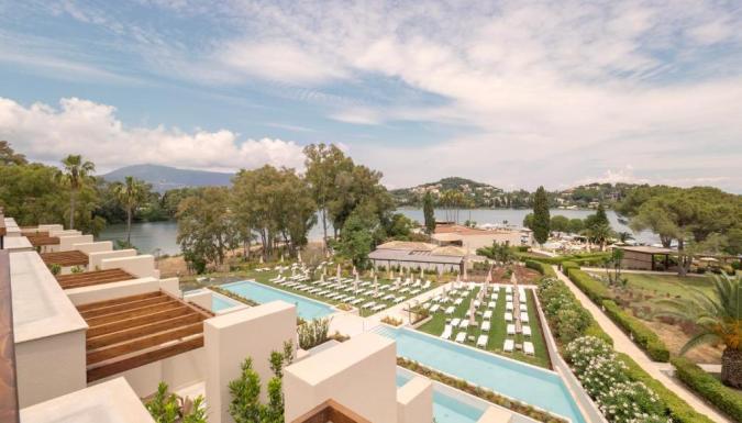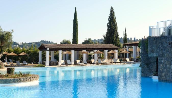Курортный спа-отель Dreams Corfu с системой обслуживания «все включено» расположен на пляже, в 8 км от главного порта острова. Он занимает участок с нетронутым природным ландшафтом площадью 32 га.