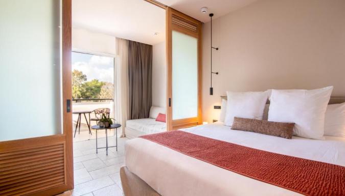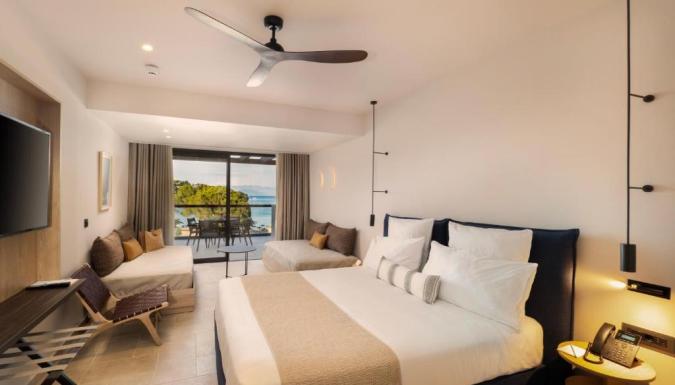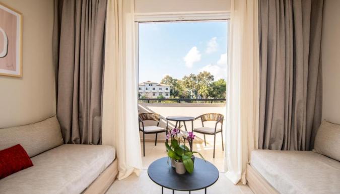 Просторные номера курортного спа-отеля Dreams Corfu с системой обслуживания «все включено» укомплектованы сейфом и небольшим холодильником. С балкона открывается вид на сад, внутреннюю территорию или море.