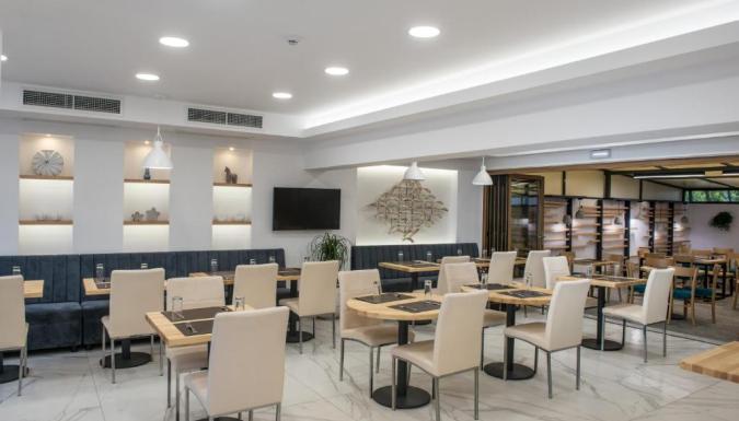 В ресторане отеля подают завтрак и ужин, а в баре можно заказать освежающие напитки. Кроме того, к услугам гостей небольшой фитнес-центр с видом на море и бассейн. Во всех номерах и в вестибюле отеля работает бесплатный Wi-Fi.