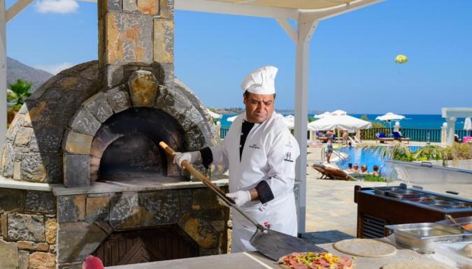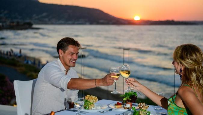 В отеле работают 2 ресторана. В ресторане Meltemi подают фирменные блюда традиционной греческой кухни, а главный ресторан отличается более торжественной обстановкой и великолепным видом на залив. Кроме того, гости могут посетить таверну Kriti. В баре у бассейна Apollo, главном баре, пляжном баре Alexander и лаундже Alexander можно заказать различные прохладительные напитки.