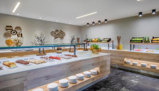В главном ресторане подают разнообразные блюда греческой, средиземноморской и интернациональной кухни. Расположенный прямо на берегу моря ресторан с обслуживанием по меню предлагает альтернативные блюда местной и средиземноморской кухни.