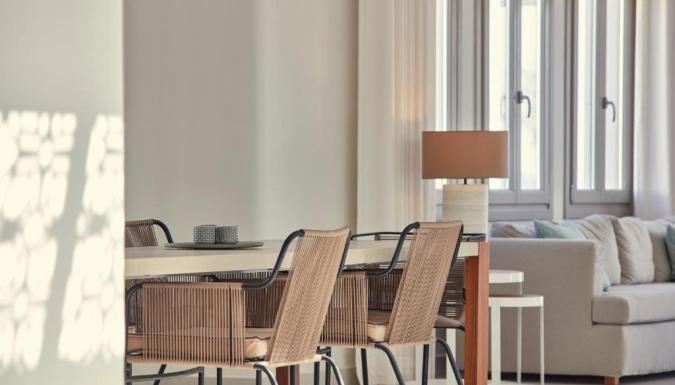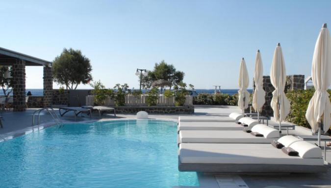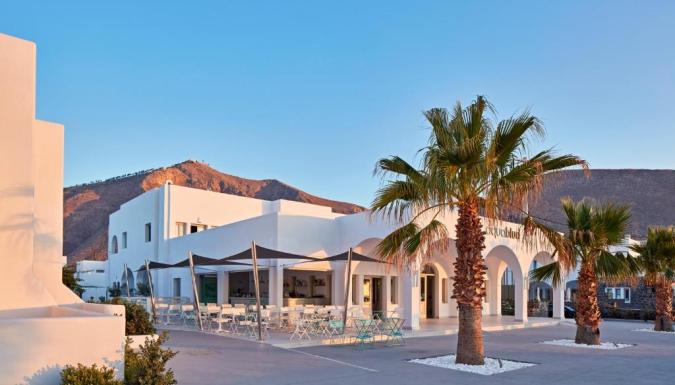 Город Фира, оживленная столица острова Санторини, находится в 15 км от отеля, а до аэропорта и порта Санторини — 20 минут езды. Поблизости можно заняться водными видами спорта, а также посетить многочисленные рестораны и развлекательные заведения.
