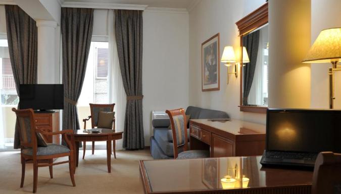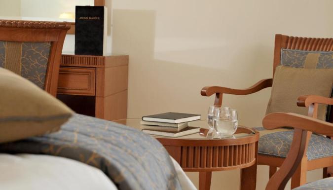 Номера и люксы отеля Atrium оформлены в теплой цветовой гамме и со вкусом обставлены мебелью. Каждая ванная комната оснащена гидромассажной ванной или гидромассажным душем. Гости могут воспользоваться банными халатами и тапочками. Номера оборудованы ортопедическими матрасами, окнами с двойным остеклением, принадлежностями для чая/кофе и мини-баром.