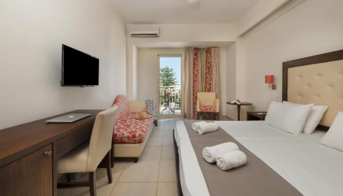 В ресторане отеля подают традиционные блюда критской и международной кухонь. В течение дня у бассейна работает крытый бар, где можно заказать прохладительные напитки, свежевыжатые соки, кофе и легкие закуски.