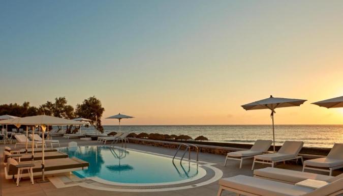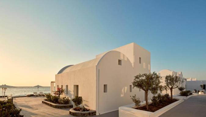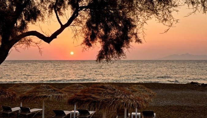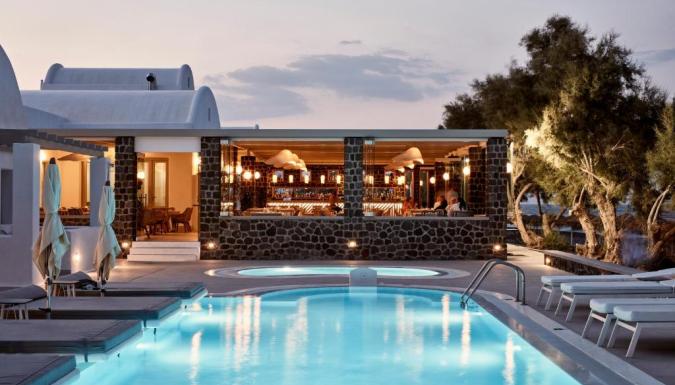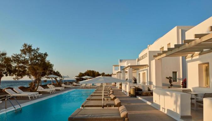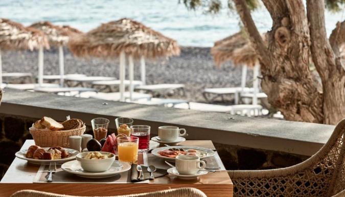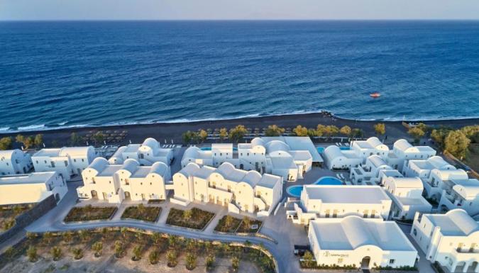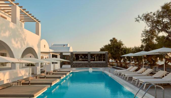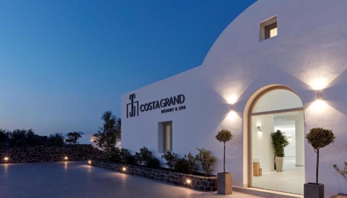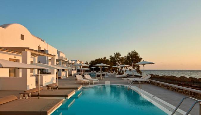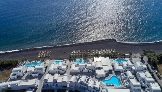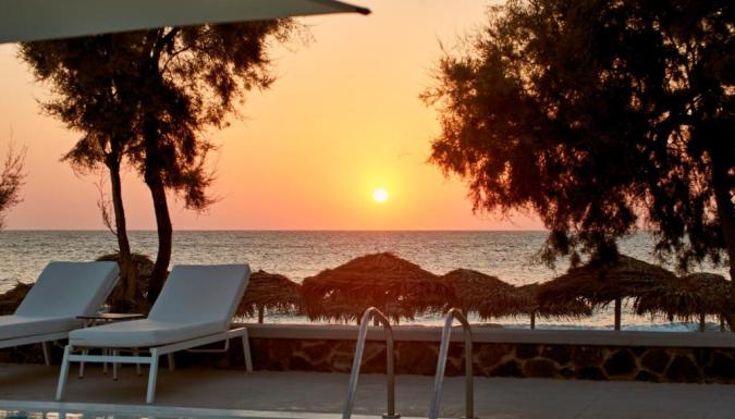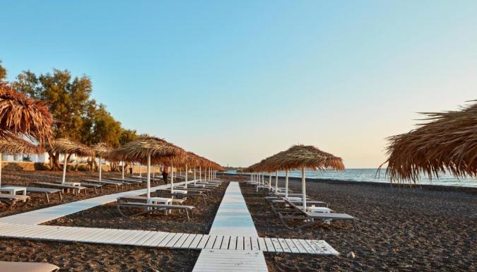 Роскошный курортный спа-отель Costa Grand с частной пляжной зоной расположен на всемирно известном черном пляже Камари. К услугам гостей шезлонги и зонтики в нескольких шагах от лаундж-бара.