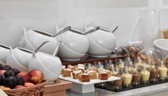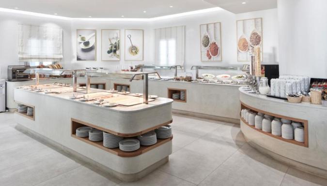По утрам подают завтрак «шведский стол». Гости смогут отведать блюда интернациональной кухни и традиционные греческие блюда средиземноморской кухни прямо на пляже в ресторане отеля.