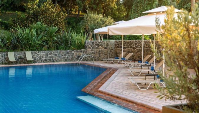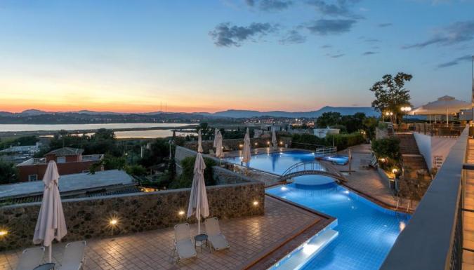 В 4-звездочном отеле Divani Corfu Palace, построенном среди пышной зелени на полуострове Канони и всего в 3 км от центра города Корфу, есть бассейн с гидромассажной зоной. Завтрак сервируется на террасе с видом на залив. Повсеместно доступен бесплатный Wi-Fi.