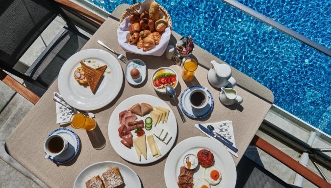 В главном ресторане на обед и ужин подают блюда греческой и интернациональной кухни. В ресторане у бассейна Laguna с видом на закат можно заказать напитки и закуски.