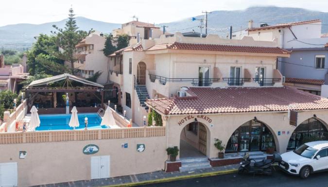 Отель Erato находится в поселке Гурнес-Педиадос, всего в 15 км к востоку от Ираклиона. Гости могут насладиться золотыми песками и прозрачными водами восточного побережья Средиземного моря.