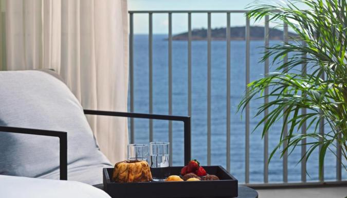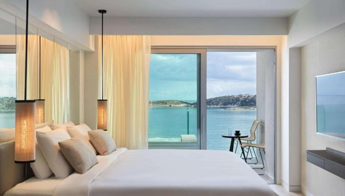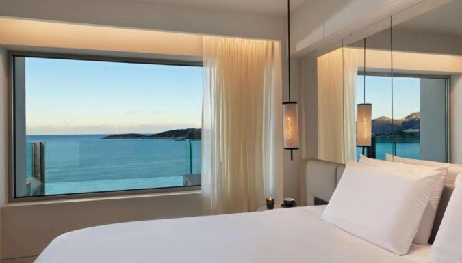 Номера и люксы отличаются высококлассным, роскошным оформлением, в большинстве из них есть собственный небольшой бассейн. Из каждого номера открывается либо панорамный вид на море, либо вид на атриум. Все номера оборудованы просторной душевой.