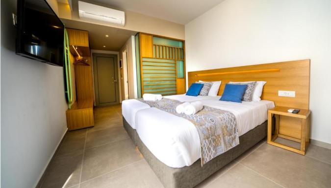 Светлые номера отеля Adele Beach оснащены кондиционером и оформлены с использованием оттенков синего. Во всех номерах есть телевизор и фен. В некоторых номерах установлен мини-холодильник, а из окон открывается вид на Критское море.