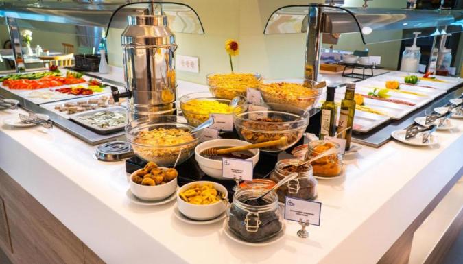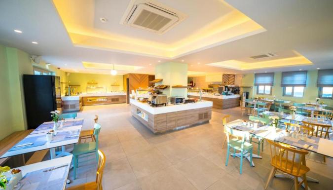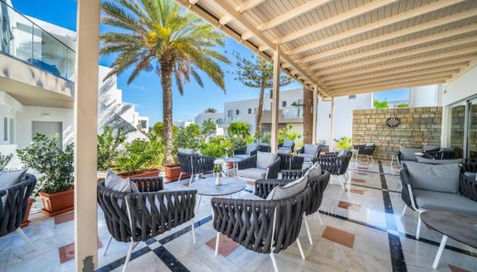 По утрам у бассейна гостям сервируют завтрак «шведский стол», включающий горячие и холодные блюда. В ресторане отеля можно отведать традиционные блюда критской кухни и полюбоваться панорамным видом на море.