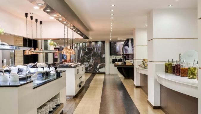 В ресторане Mira Mare подают американский завтрак и блюда интернациональной и греческой кухни. В отеле есть пиццерия, а также ресторан Casual Grill, специализирующийся на приготовлении мяса на гриле.