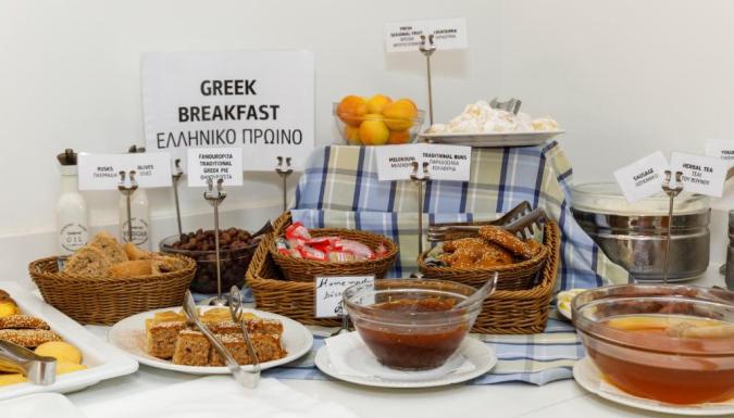 В ресторане отеля подаются блюда греческой и интернациональной кухни в виде "шведского стола". В отеле также есть стильный бар. Кроме того, имеется бар возле бассейна, где можно заказать напитки и коктейли.