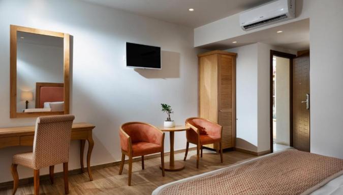 Бесплатные туалетно-косметические принадлежности, Ванна или душ, Тапочки, Фен, Туалетная бумага, Рабочий стол, Сейф, Телевизор с плоским экраном, Мебель на улице, Полотенца, Гостиный уголок, Розетка около кровати, Кофеварка/чайник, Телевизор, Белье, Мини-бар, Электрический чайник, Телефон, Шкаф или гардероб, Звукоизоляция, Спутниковые каналы, Кондиционер, Вешалка для одежды