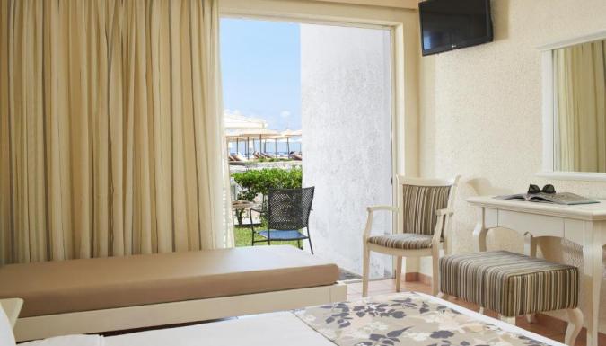 Отель находится рядом с пляжем. В главном ресторане с видом на Эгейское море предлагается завтрак, обед и ужин по системе «шведский стол». В ресторане с обслуживанием по меню подают вкусные блюда греческой и интернациональной кухни, закуски и десерты.