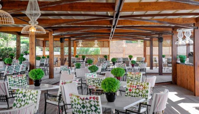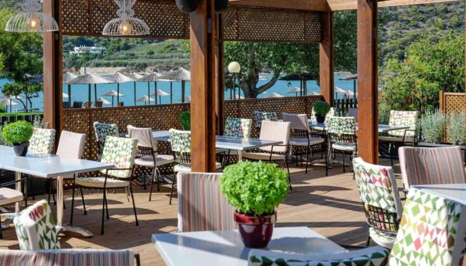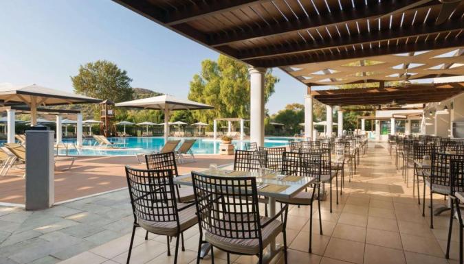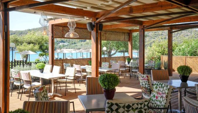 Каждое утро на солнечной веранде главного ресторана под открытым небом подается обильный завтрак. Ресторан у бассейна специализируется на блюдах греческой и интернациональной кухни. В главном баре для гостей проводятся различные тематические мероприятия. В баре у бассейна представлен широкий выбор коктейлей, прохладительных напитков и мороженого.
