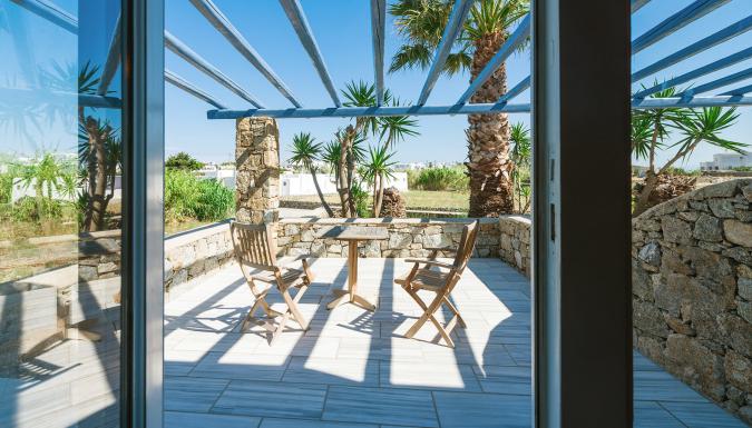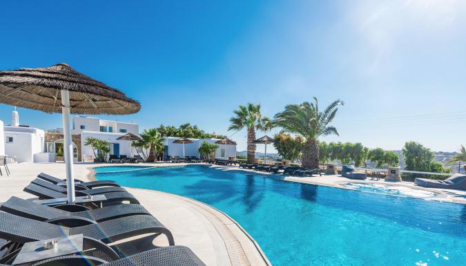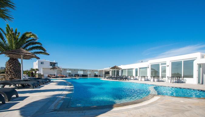 2,5 км от центра МИКОНОС, возле местной дороги, ближайшие магазины и бары ок. 300 м от отеля; ок. 3 км от аэропорта на Миконос; автобусная остановка ок. 200 м от отеля.