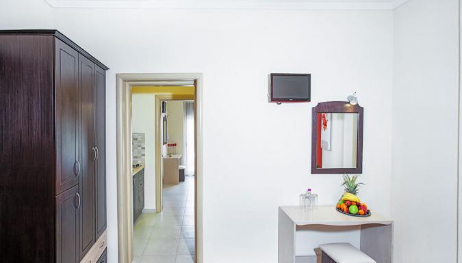 Кондиционер, телевизор, спутниковое ТВ, мини-холодильник, кухня, электрическая плита (2 конфорки) без духовки, сейф, ванная комната, душевая кабина, фен, зеркало, балкон/терраса