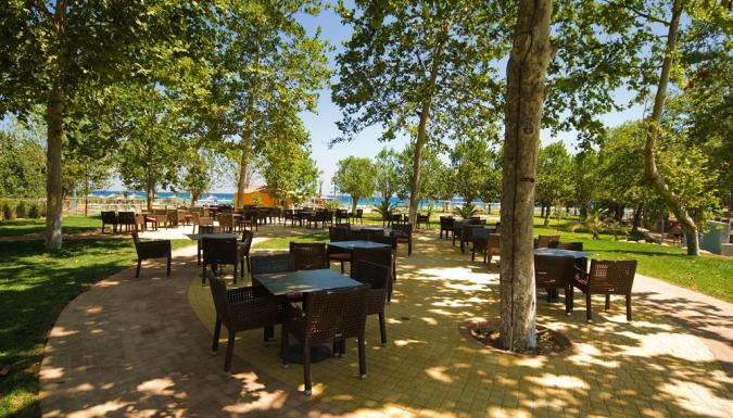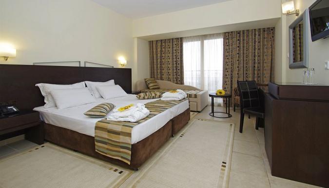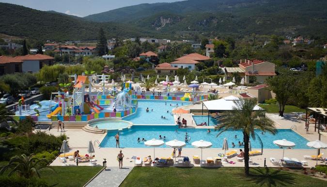 Отель расположен прямо на берегу моря, в п. Платамонас, в 35 км от г. Катерини, в 155 км от аэропорта «Македония». Cемейный курорт пл. около 6 гектаров на золотом побережье. Всего в отеле 192 номера.