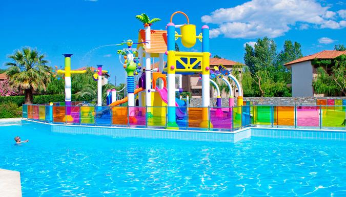 Детское меню, детские коляски, детский клуб, детский городок, вольер с птицами. Splash park: Уникальная игровая площадка нулевой глубины, более 40 видов водных аттракционов
