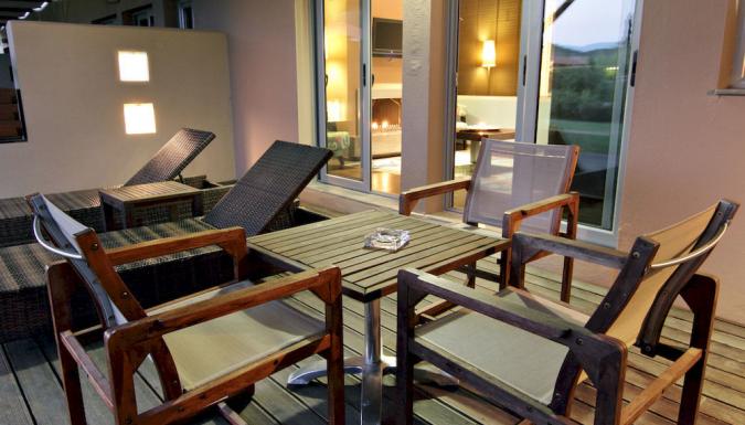 Кондиционер, телефон, мини-бар, спутниковое телевидение, сейф, ванная комната, фен, халат, балкон/терраса