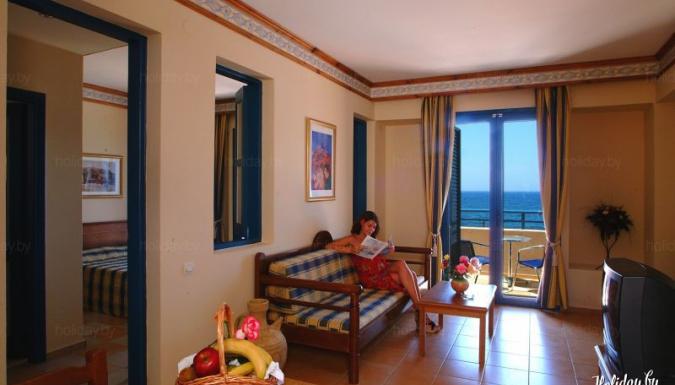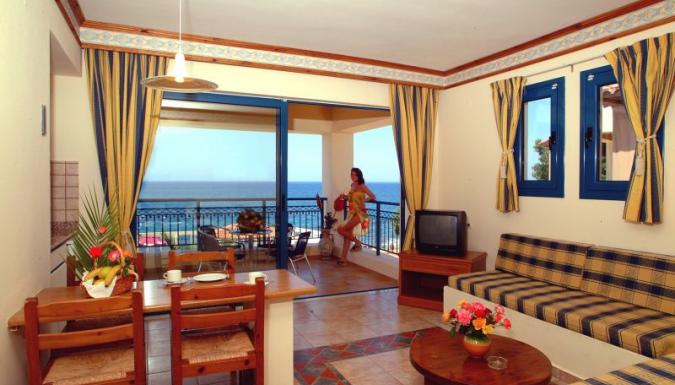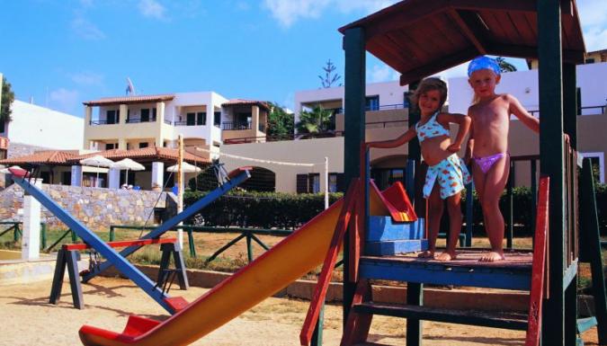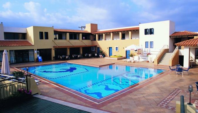 Отель построен в виде деревни в национальном критском стиле, состоит из апартаментов и студио. На территории отеля расположены: ресторан, парковка, медицинский центр, фитнес-центр, детский клуб и теннисный корт.