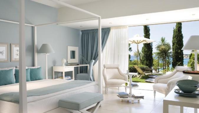 - Из номеров гостиницы открывается великолепный вид на Эгейское море и горы