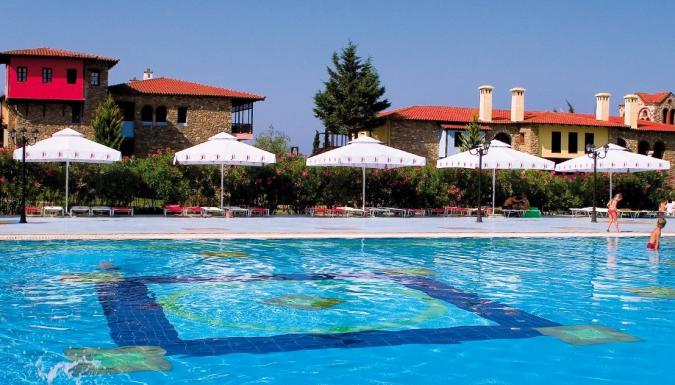 Отель Simantro Beach расположен на п-ове Кассандра, в районе Сани, 80 км от аэропорта «Македония» г. Салоники. Состоит из 17-ти утопающих в зелени двухэтажных зданий, построенных в монастырском стиле. Всего 346 номеров.