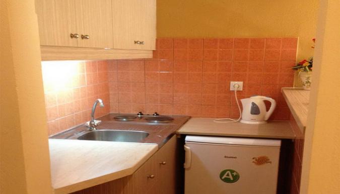 В номерах: оборудованная кухня (холодильник, электрическая плита с 2-мя конфорками, электрический чайник, посуда), кондиционер, телевизор, спутниковые каналы, бесплатный Wi-Fi интернет, душ, фен, балкон