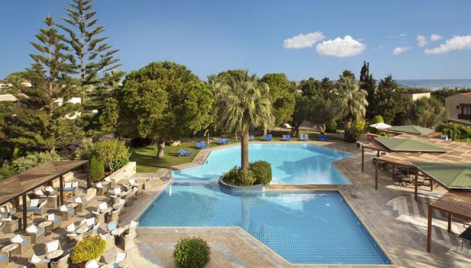 Этот элегантный отель расположен в тихом месте на окраине популярного молодежного курорта Малия. Живописный сад, с пальмовыми деревьями и кактусами, создает уникальную атмосферу экзотики. А изумительный песчаный пляж и богатая анимационная программа для гостей любого возраста привлекают сюда родителей с детьми и семейные пары. Отель состоит из основного здания и бунгало, окруженных прекрасным садом с пальмами. Общее количество номеров – 204 (53 – в основном здании, и 111 – в бунгало с видом на море или сад, 16 – пулфронт бунгало, 16 VIP джуниор бунгало сьютов с видом на море, 7 семейных бунгало и Президентский сьют). 6 раз в неделю в отеле проводятся различные развлекательные программы для детей и взрослых. Еженедельно организуются греческие фольклорные вечера, барбекю и рыбные фестивали.