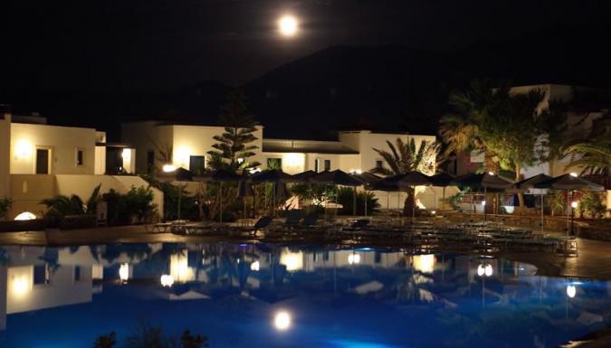 В архитектуре отеля сочетается традиционный критский стиль и роскошь фешенебельных комплексов. Состоит из основного корпуса и комплекса бунгало. К услугам туристов 2 пляжа – песчаный и каменистый с удобными входами в море, оба они оборудованы зонтами и шезлонгами. Все виды морского спорта (доп. плата только за виды спорта с использованием бензина). Отличный центр подводного плавания (за доп. плату). Лежаки и зонтики у бассейнов и на пляже – бесплатно. Пляжные полотенца выдаются под небольшой залог. Питание: отель работает по системе " все включено" - завтрак, обед и ужин - шведский стол, все алкогольные и безалкогольные напитки, закуски, мороженое, сладости - бесплатно, раз в неделю гостям предоставляется возможность поужинать в одном из 4-х ресторанов а-ля-карт.