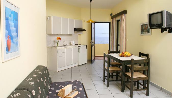 Новый современный отель, расположенный непосредственно у моря. Около отеля - замечательный сад с множеством пальм и экзотических цветов. Здесь расположен открытый бассейн с детским отделом (вода пресная), рядом детская площадка. К услугам гостей: центральный ресторан с видом на море, телевизионный салон, камин, мини-маркет. Песчаный пляж, зонтики и лежаки оплачиваются дополнительно. В местечке Като Гувес, всего в 300 метрах от отеля вы найдете большое разнообразие таверн, ресторанов, баров.