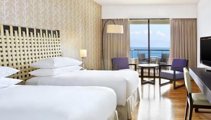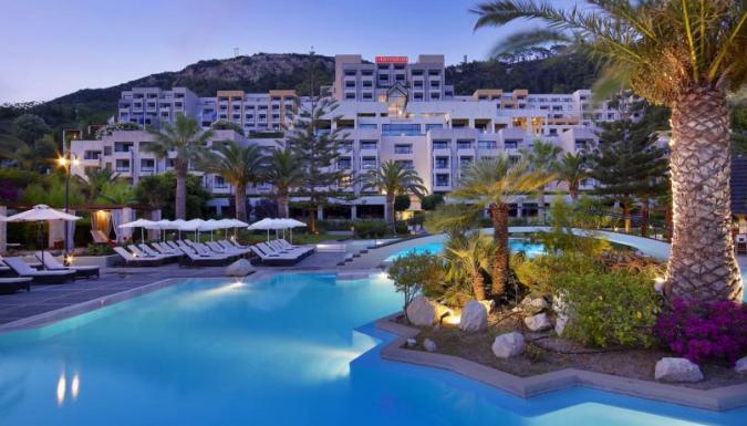 Относится к цепочке отелей HILTON. Этот роскошный отель был открыт в 1993 году, обновлен и отремонтирован в 2000 г. Его с полным правом отнести к ряду лучших отелей острова. Он расположен на пологом склоне горы, плавно спускающимся к пляжам залива Иксия. Уютные номера, просторные холлы, большая ухоженная территория и прекрасно оборудованный пляж, широкий выбор услуг и первоклассный сервис - здесь есть все, о чем может мечтать самый взыскательный турист. Рестораны: центральный ресторан «Кастеллания», 2 ресторана a la carte, «Пергола» около бассейна, ресторан спесиалитэ с традиционными блюдами острова Родос. Два открытых и один крытый бассейны. Один из открытых бассейнов сделан в виде тропической лагуны с водопадом, островком и мостиком. Специальный детский бассейн с инструктором. А тех, кто предпочитает купаться в голубом Средиземном море, туннель прямо от гостиницы приведет к смешанному (песок/галька) пляжу.