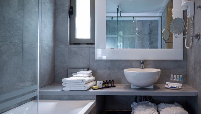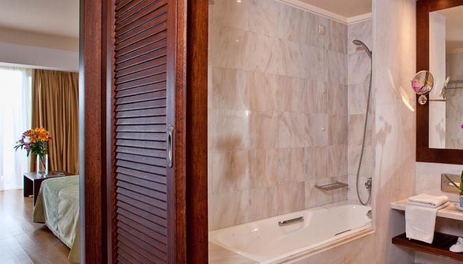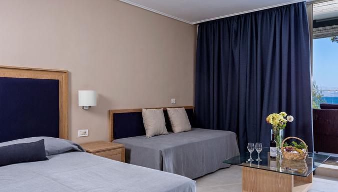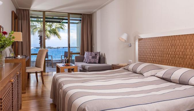 Doubles Superior MB Sea Front (~28 кв.м) Расположены на первом этаже. Двуспальная кровать или 2 односпальные, маленькая кушетка или диван, письменный стол, набор для приготовления кофе/чая. По прибытии – бутылка вина и бутылка минеральной воды, фрукты.