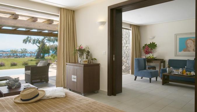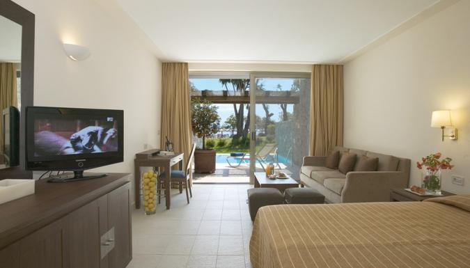 Junior Suite Bungalow Sea Front Private Pool (~36 кв.м) Расположены на 1-ом этаже. Спальня с двуспальной кроватью, письменный стол, кушетка, частный бассейн, набор для приготовления чая/кофе, меблированнная терраса. По прибытии – бутылка вина и бутылка минеральной воды, фрукты, приветственный коктейль, цветы, vip – туалетный набор.