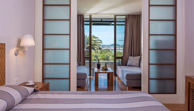 Family Room MB Bay View (~36 кв.м) Расположены на 5-м этаже центрального здания. Спальня с двуспальной кроватью, гостиная с 2-мя отдельными диванами. Разделены раздвигающейся дверью. Набор для приготовления кофе/чая. По прибытии – бутылка вина и бутылка минеральной воды, фрукты.