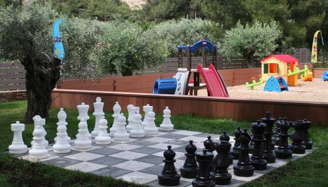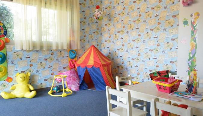 Детская комната в высокий сезон, Детская площадка, Детский бассейн с морской водой, Детское меню - по запросу. Детские стульчики в ресторане, чайники, подогреватели для детского питания, Няня по запросу