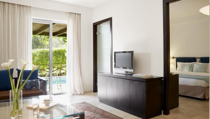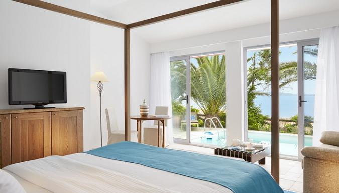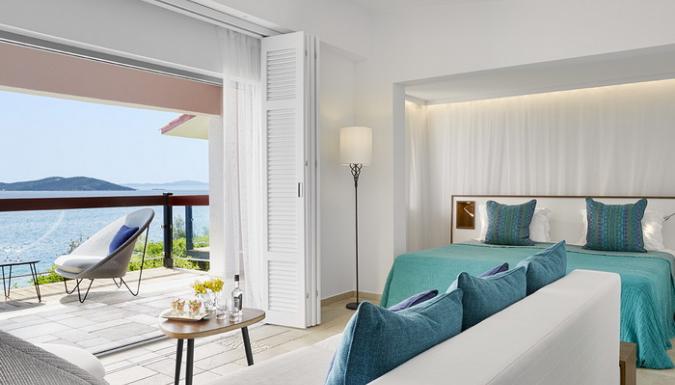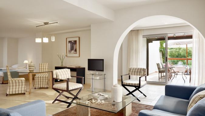 - оформленные с безупречным вкусом и имеющие общую площадь 40 кв.м., Junior Suite с видом на море - это живописные апартаменты с выходом на прекрасный песчаный пляж — один из самых роскошных на побережье Халкидики;