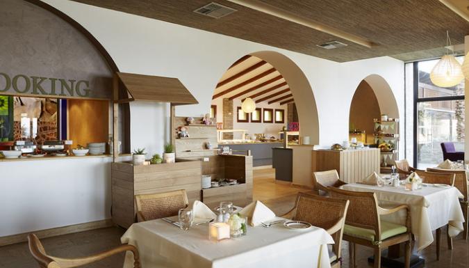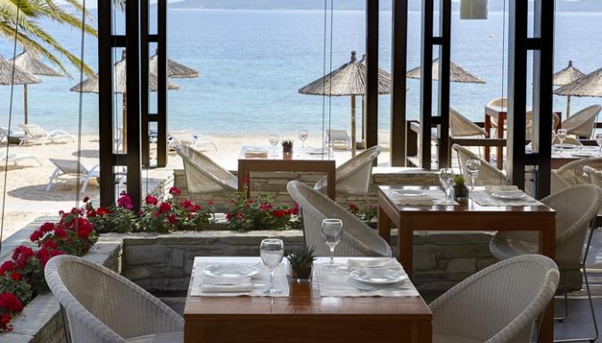 Каждое утро сервируется сертифицированный Греческой палатой отелей греческий завтрак со свежеиспеченными местными пирогами, сыром и свежими фруктами. В ресторане Kamares на обед подаются изысканные блюда интернациональной кухни, в том числе тапас и суши, а в ресторане Almyra — рыбные блюда.Также в кафе, коктейль-баре и баре на пляже в течение всего дня гостям предлагают широкий ассортимент напитков и коктейлей.