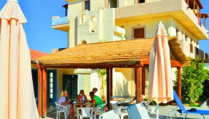 Отель находится в поселке, по утрам поют петухи и блеют овцы. Это не мешает отдыху, а создает ощущения уединения и спокойствия. Из номеров немного слышен шум моря. До ближайшего супермаркета, таверны, бюро экскурсий – около одного киллометра. В тавернах или в ресторанах порции очень большие. Никаких развлечений в ближайших окрестностях нет. До Херсониссос – около пяти километров. До моря 300 метров, но Крит – это вулканический остров и берега – либо застывшая лава, либо очень большие и острые камни. До ближайшего пляжа, чтобы удобно было купаться около одного километра.