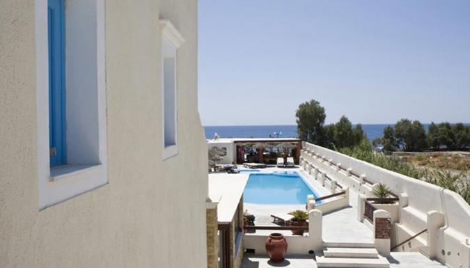 Благодаря выгодному расположению, отель прекрасно подходит как для длительного пребывания, так и для краткосрочного отпуска. Отель построен по канонам традиционного стиля Киклад, в синих и пастельных тонах.