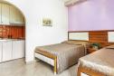 В номерах: оборудованный кухонный уголок (электрическая плитка с 2-мя конфорками, вытяжка, электрочайник, посуда), инд. кондиционер, бесплатный Wi-Fi, спутниковое ТВ (рос. канал), холодильник, душевая, фен, балкон/терраса. Двуспальная кровать.